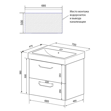 Комплект Azario Тумба Ника 70 700х475х560 подвесная, с раковиной Tempo 70, белый глянцевый (CS00092801)