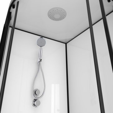Душевая кабина Loranto NEO 90x90x(190+15) с низким поддоном 15см, прозрачное закаленное стекло 5 мм, задние стеклянные стенки белые, профиль черный-матовый (CS-22109)