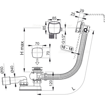 Слив-перелив для ванны Alcaplast полуавтомат, хром (A565CRM2-80)