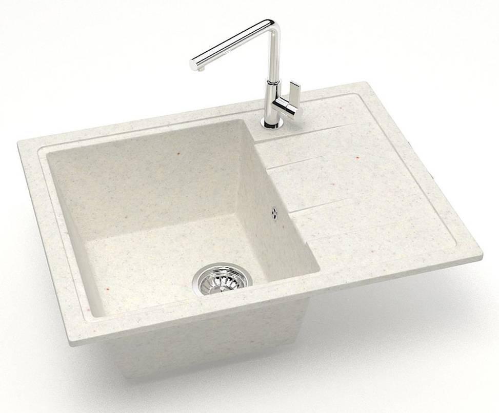 Кухонная мойка изготовлена из современных экологически чистых материалов, природного молотого кварца, мрамора или гранита с добавлением специальных пигментов и красителей.